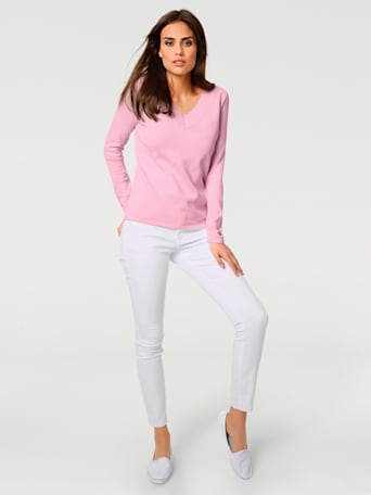 Pull à col V rose pour femme