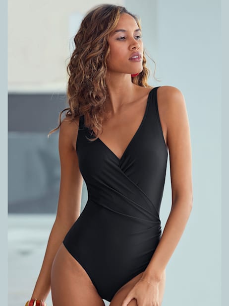 Maillot de bain élégant, Insert modelant devant, Élastique sous la poitrine devant, Dos droit haut, Bretelles réglables